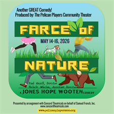The Pelican Players Community Theater presents the non-stop hilarity of “Farce of Nature,” penned by the noted playwriting team of Jessie Jones, Nicholas Hope, and Jamie Wooten, focuses on one chaotic day in the life of the Wilburns, owners of a struggling fishing lodge in the Ozarks. As in every farce, there are wild and unusual happenings, mistaken identity, frenzied confrontations, ridiculous disguises, and secrets exposed as the family deals with a Witness Protection snitch, a cop dressed as a maid, a discontented wife and outrageous unexpected guests.